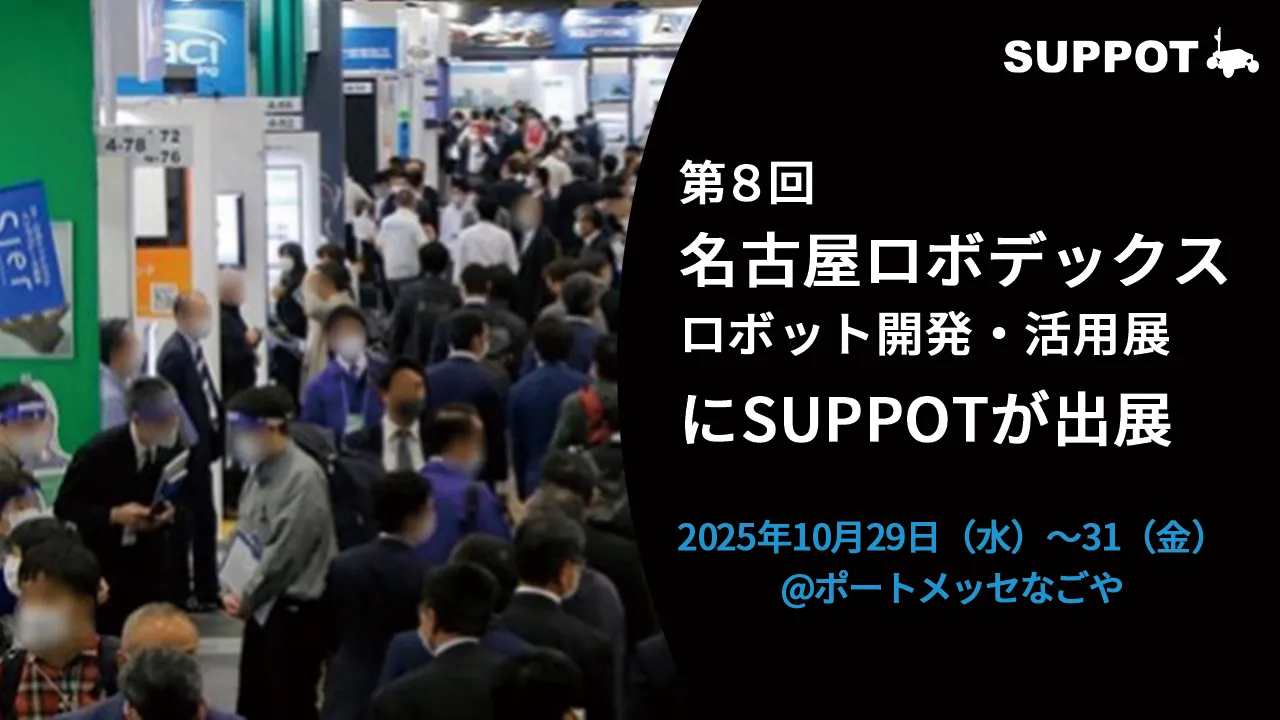 2025年10月29日(水)〜31(金)に開催される「第8回名古屋 ロボデックス〜ロボット開発・活用展〜」に作業支援ロボット「SUPPOT」が出展いたします。当イベントは、製造の「DX化」を実現する[名古屋]スマート工場 EXPO、「自動化」を実現する[名古屋]ロボデックス、「脱炭素」を実現する[名古屋]製造業カーボンニュートラル展、製造業の「人材不足対策」に焦点を当てた[名古屋]製造業 人手不足対策 EXPOの4展により構成され、製造業のトレンドを網羅した一大展 [名古屋] ファクトリーイノベーション Week として盛大に開催します。人手不足・構内搬送のムダを解消し、現場の省人化と効率化を支援する「SUPPOT」をぜひブースでご体感ください。